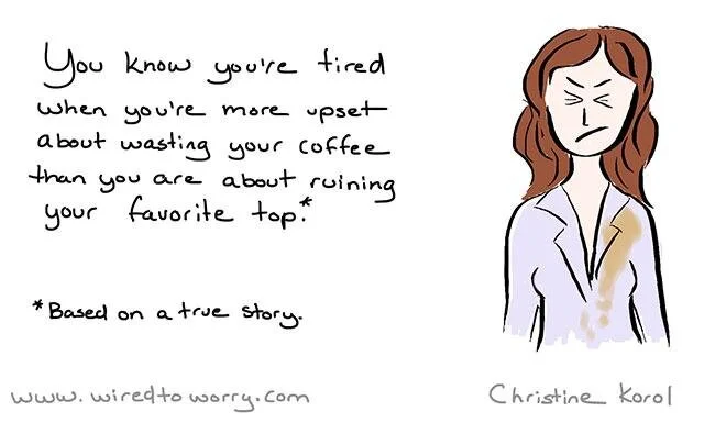 I was also really surprised when I cared more about my coffee than I did about spilling it on myself (the coffee wasn't too hot at the time thankfully). I knew I had been powering through trying to get more stuff done than was humanly possible - but even I hadn't realized that I had reached that level of fatigue.