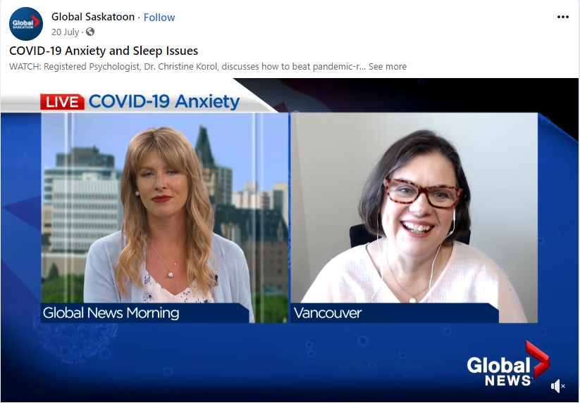 Dr. Christine Korol has been featured in numerous media outlets across Canada to provide professional insights on mental health, anxiety, and stress prevention, including tools to manage those conditions in children and adults.